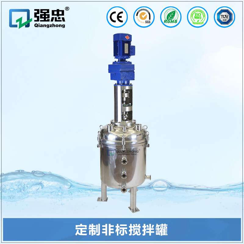 不锈钢搅拌罐广泛应用于涂料、医药、建材、化工、颜料、树脂、食品、科研等行业。可根据用户产品的工艺要求选用 304、314L 材料制作,以及设置加热、冷却装置,以满足不同的工艺和生产需要。加热形式有夹套电加热、盘管加热,该设备结构设计合理、工艺先进、经久耐用,并具有操作简单、使用方便等特点,是理想的投资少、投产快、收益高的化工设备。